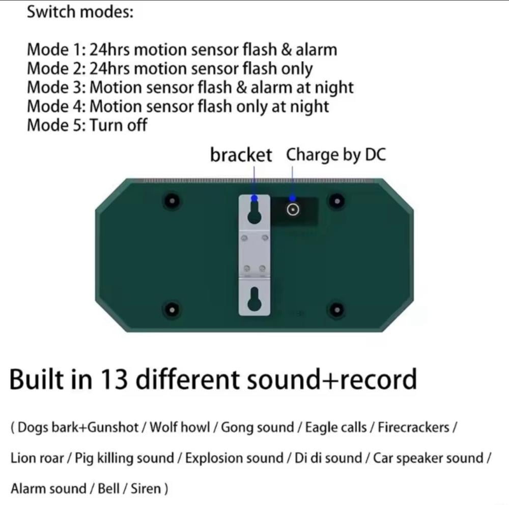 .• يصدر صوت انذار. ( هناك مجموعة اصوات تستطيع اختيار ما يناسب ) بمجرد اقتراب اي شخص أو حيوان من المكان .